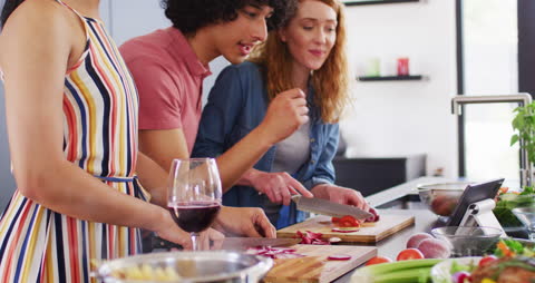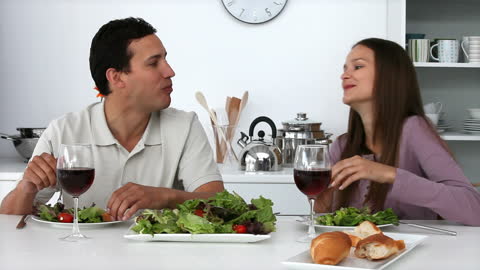 Two Friends Enjoying Ice Cream And Conversation In Bright Kitchen Videos