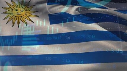 Uruguay Flag Overlay With Financial Data Visualization Videos