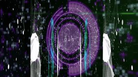 Vertical Cyber Control Console Displaying Cycling Numeric Data And Pulsing Purple Waveform Videos