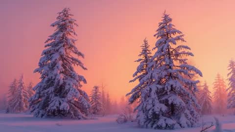 Vertical Flag With Blue Stripe Waving Over Snowy Pine And Spruce Forest At Soft Sunrise Videos