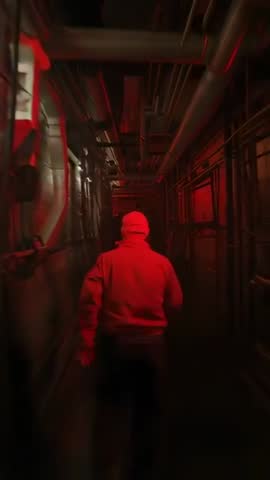 Vertical Industrial Corridor With Pulsing Magenta Control Panel And Dense Network Of Pipes Videos
