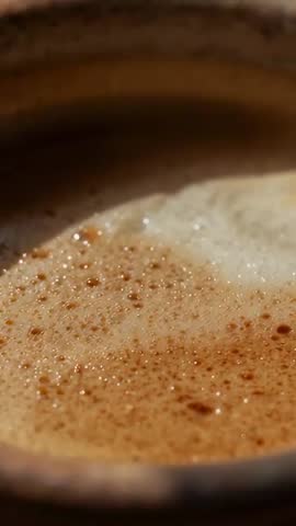 Vertical Macro Video Capturing Latte Art Swirling Foam On Ceramic Cup With Warm Crema Videos
