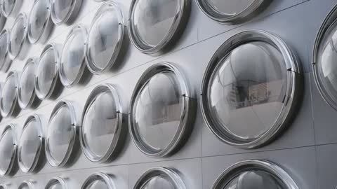 Vertical Neon Data Waveform Materializing Across Chrome Bars And Discs For Analytics Videos
