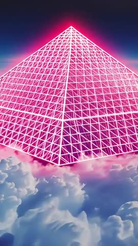 Vertical Video Showing Pink Lattice Pyramid Rising Through Clouds Toward Glowing Apex Videos