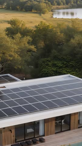 Vertical Video Showing Solar Farm Generating Clean Energy With Animated Data Waves Videos