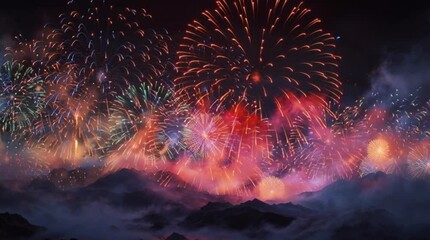 Vibrant Fireworks Exploding Against Night Sky Videos