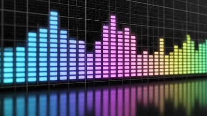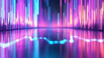 Vibrant Neon Equalizer Visualization Against Reflective Surface Videos