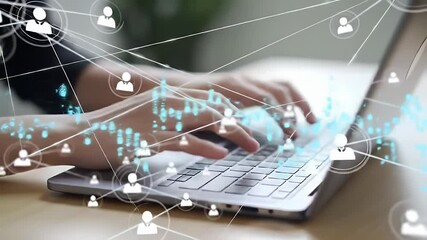 Virtual Connection Network With Social Media Icons Overlay Videos