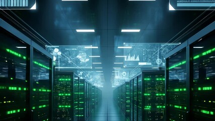 Virtual Data Processing Interface In A Modern Server Room Videos