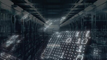 Virtual Network And Binary Code Above Data Center Servers Videos