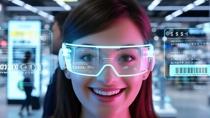 Virtual Reality Headset With Futuristic Data Overlay Videos