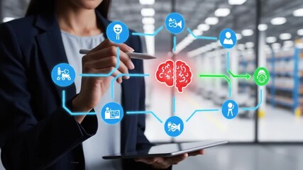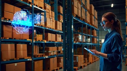 Warehouse Manager Analyzing Data Using Holographic Technology Videos