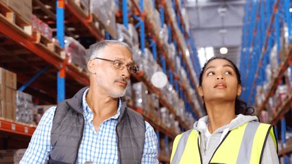 Warehouse Senior Worker Navigating Global Network System Videos
