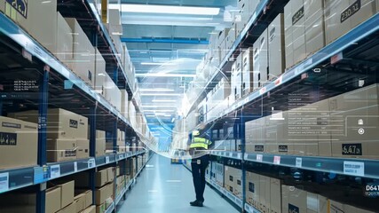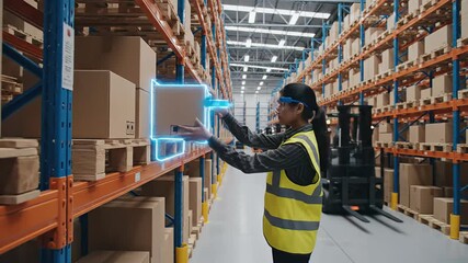 Warehouse Worker Analyzing Data With Augmented Reality Tech Videos