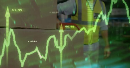 Warehouse Worker Analyzing Data With Graph Overlay Videos