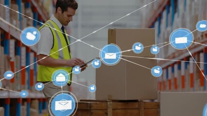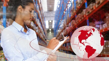 Warehouse Worker Analyzing Digital Stock Data Overlay Videos