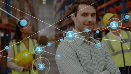 Warehouse Worker And Global Digital Connection Network Videos