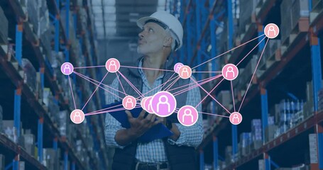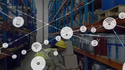 Warehouse Worker Inspecting Digital Data Connections Videos