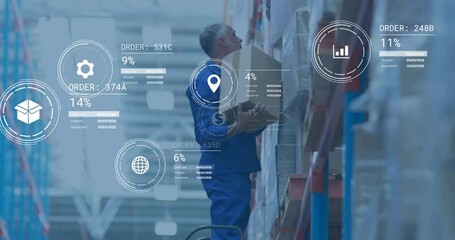 Warehouse Worker Scanning Inventory With Data Analytics Overlay Videos