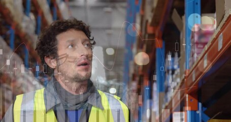 Warehouse Worker Scanning Inventory With Data Overlay Videos