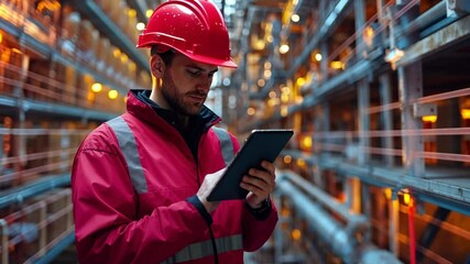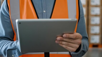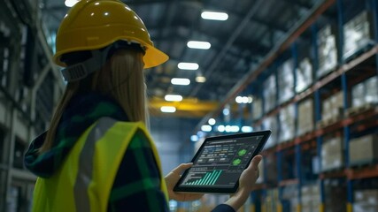 Warehouse Worker Using Digital Tablet For Data Monitoring Videos