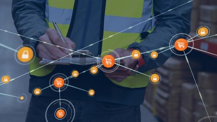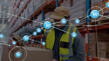 Warehouse Worker With Digital Network Connections Videos