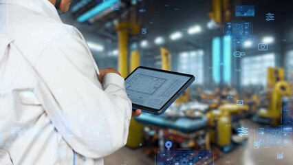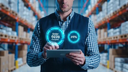 Warehouse Workers Analyzing Digital Data Hud Videos