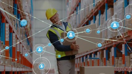 Warehouse Workers With Digital Network Overlay Videos