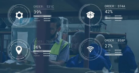 Warehouse Workers With Digital Network Visualization Overlay Videos