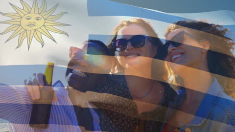 Waving Uruguay Flag Overlaid With Listening To Music Theme Videos