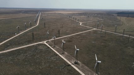 Wind Farm Overlaid With Renewable Energy Data Visualization Videos