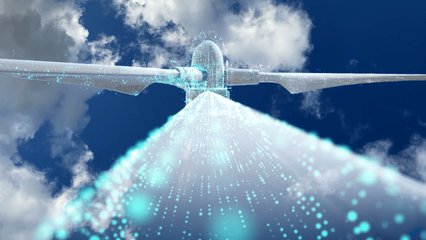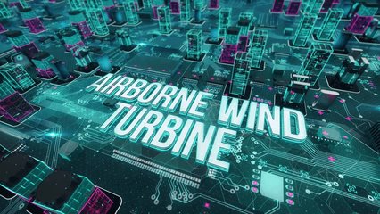 Wind Turbine Concept With Digital Data Visualization On Blue Sky Background Videos