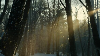 Winter Sunlight Filtering Through Snowy Forest Path Videos