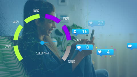 Woman Engaged In Business Videocall With Data Overlay Videos
