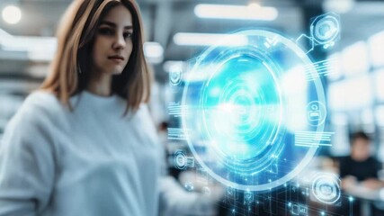 Woman Engages With Virtual Touchscreen Interface Videos