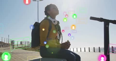 Woman Engaging In Skincare Routine With Social Media Alerts Displayed Videos