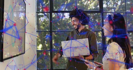 Woman Engaging With Digital Tablet And Network Visualization Videos