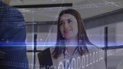 Woman Engaging With Digital Technology Interface And Binary Code Videos