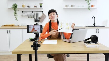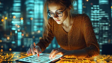 Woman Engaging With Smartphone And Laptop Displaying Technological Innovation Videos
