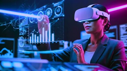 Woman Engaging With Virtual Touchscreen Interface Videos