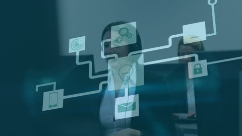 Woman Interacting With Digital Network Interface At Modern Office Videos