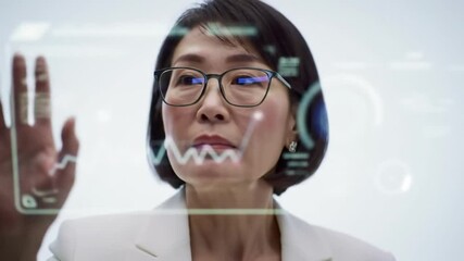 Woman Interacting With Digital Network Interface At Modern Office Videos