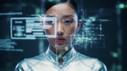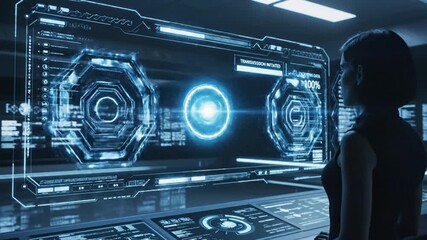 Woman Interacting With Futuristic Digital Interface For Data Processing Videos
