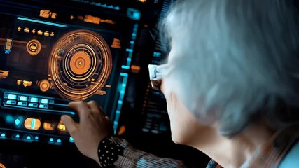Woman Interacting With Virtual Touchscreen Interface Videos