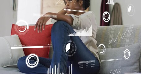Woman On Sofa Analyzing Data With Futuristic Interface Animation Videos