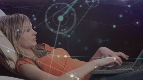 Woman On Video Call With Network Connections Graphic Overlay Videos