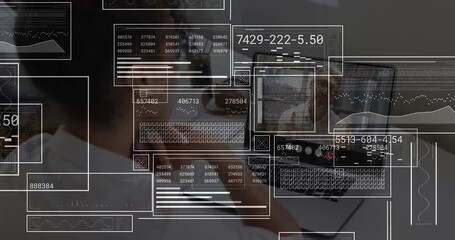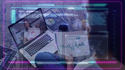 Woman Presenting At Business Meeting With Data Interface Overlay Videos