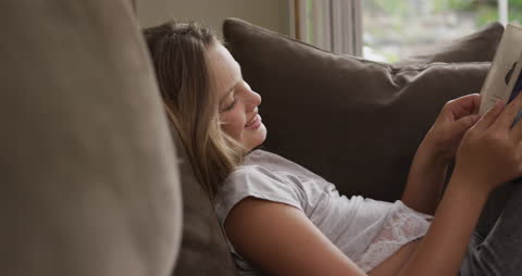 Woman Previewing Photos On Camera While Relaxing On Sofa Videos