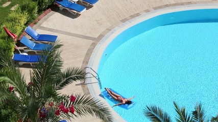 Woman Relaxing On Inflatable Lounger By Swimming Pool Videos