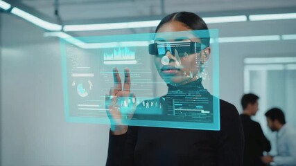 Woman Using Smartphone With Animated Data Interface Videos